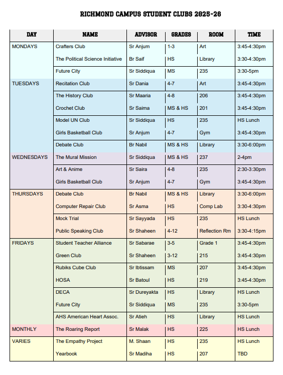 Student clubs provide an important sense of community at school and give students an opportunity to delve into interests of all kinds. Through our clubs we aim to connect our student body through shared interests, allow students to take on leadership roles, and give them the opportunity to explore new fields of learning. Explore our club offerings for 2025-26 below: